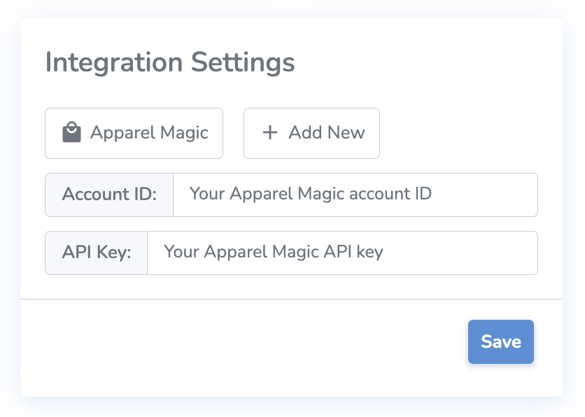 To connect Simple RFID to ApparelMagic, you'll need your account ID and an API Key from ApparelMagic.