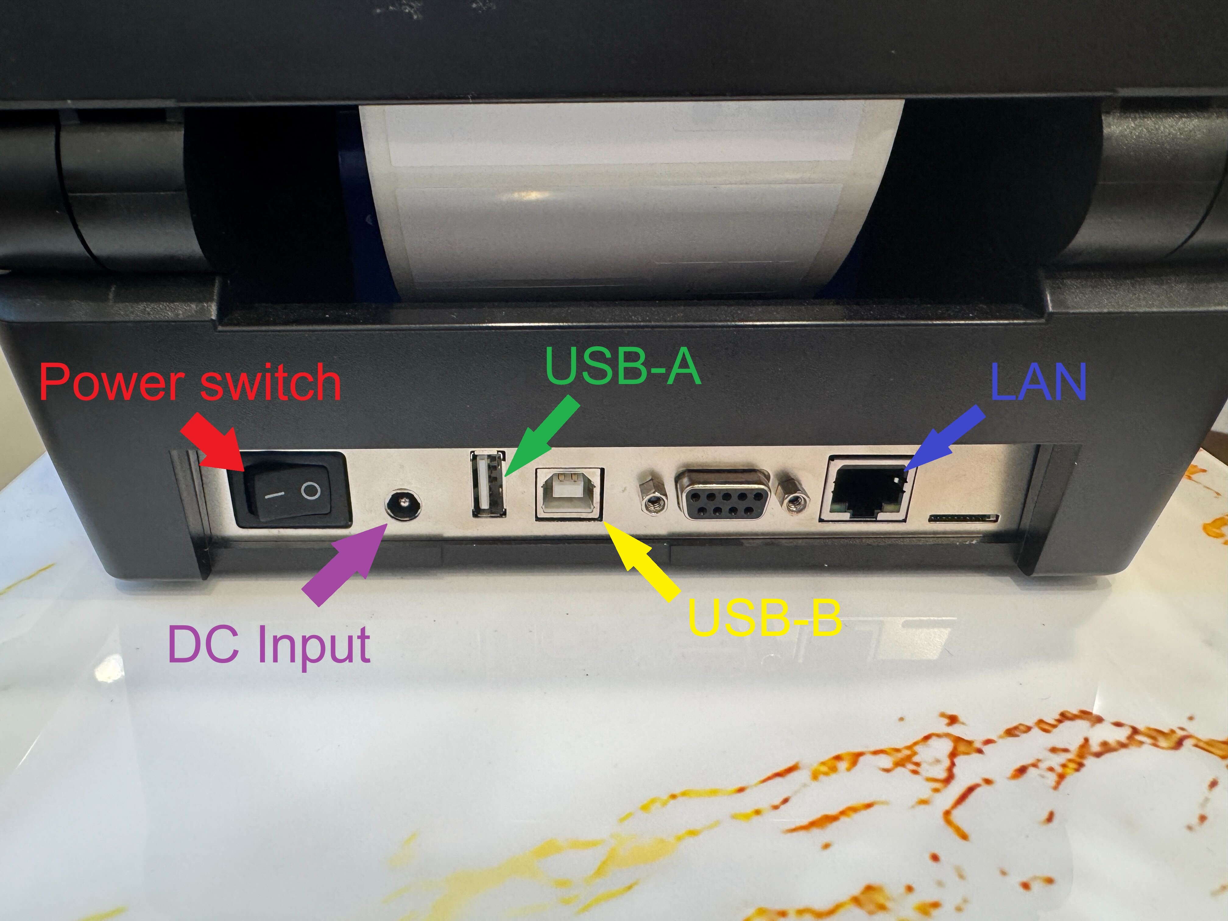 - Once connected, the printer can be turned on using the power switch.