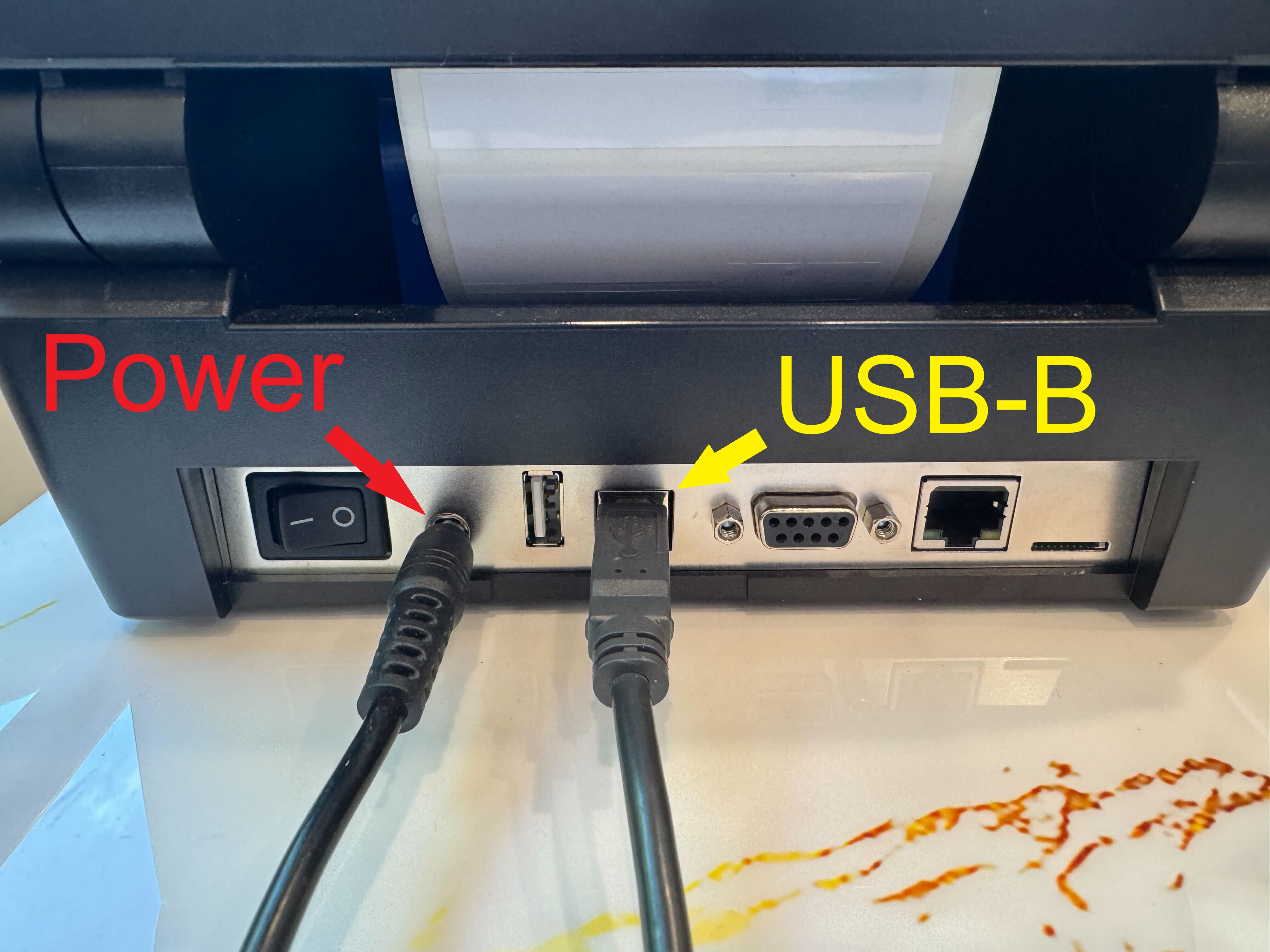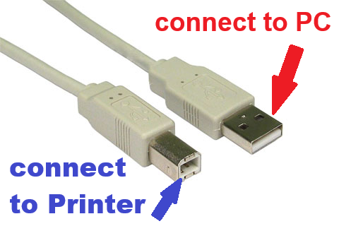 - Plug one end USB-B into the printer and the other USB-A into a PC